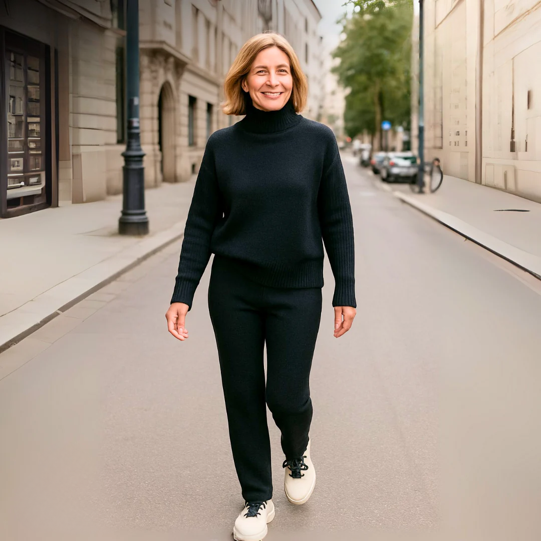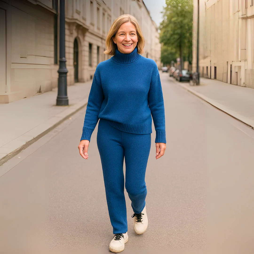 • Design: Long sleeves, matching pants, tailored yet cozy silhouette
